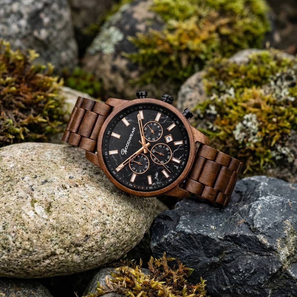 Blackrock to połączenie surowości czarnego marmuru i ciepła drewna orzecha włoskiego – zegarek, który nie szuka uwagi, ale naturalnie ją przyciąga.