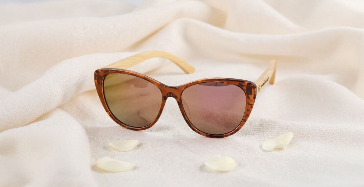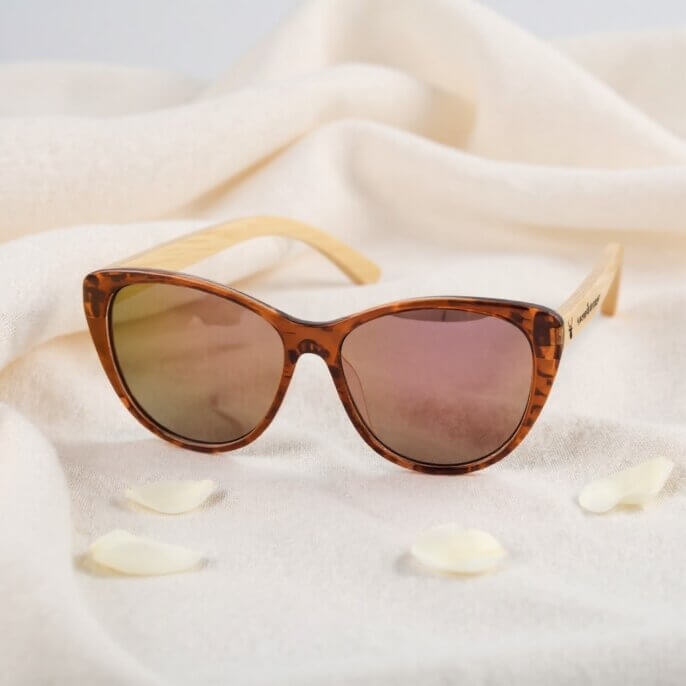 Z zausznikami wykonanymi z naturalnego drewna + oprawkami z acetatu i nowoczesnym designem ukazuje połączenie elegancji i dzikości.