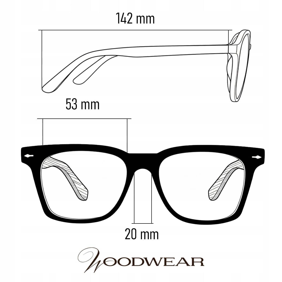 ✔ Wymiary: soczewka-mostek-zauszniki 53x20x142 mm