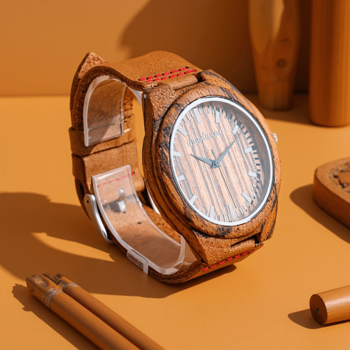 Aby zegarek służył latami: unikaj długotrwałego kontaktu z wodą i ekstremalnych temperatur; czyść delikatną, suchą ściereczką; drewniane elementy możesz od czasu do czasu delikatnie natłuścić olejkiem mineralnym, by podkreślić strukturę drewna.
