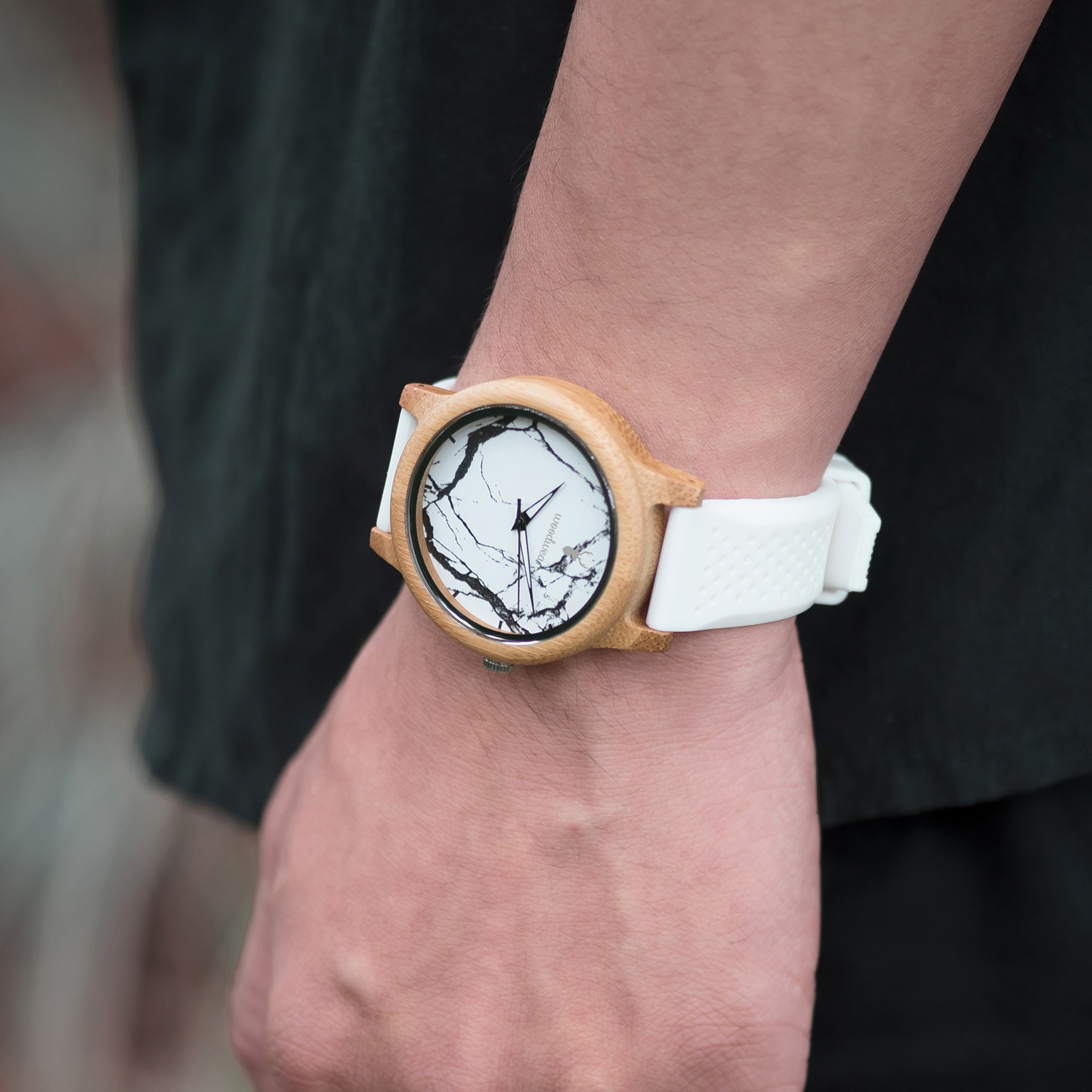 Remington to limitowany drewniany zegarek unisex — zaprojektowany z myślą o ludziach ceniących prostotę, naturalne materiały i ponadczasowy styl. Koperta wykonana z bambusa łączy lekkość z trwałością, a tarcza z subtelną imitacją kamienia nadaje mu nowoczesnego charakteru. Biały pasek z tworzywa dodaje świeżości i uniwersalności — Remington pasuje zarówno do miejskiej stylizacji, jak i wakacyjnego outfitu.